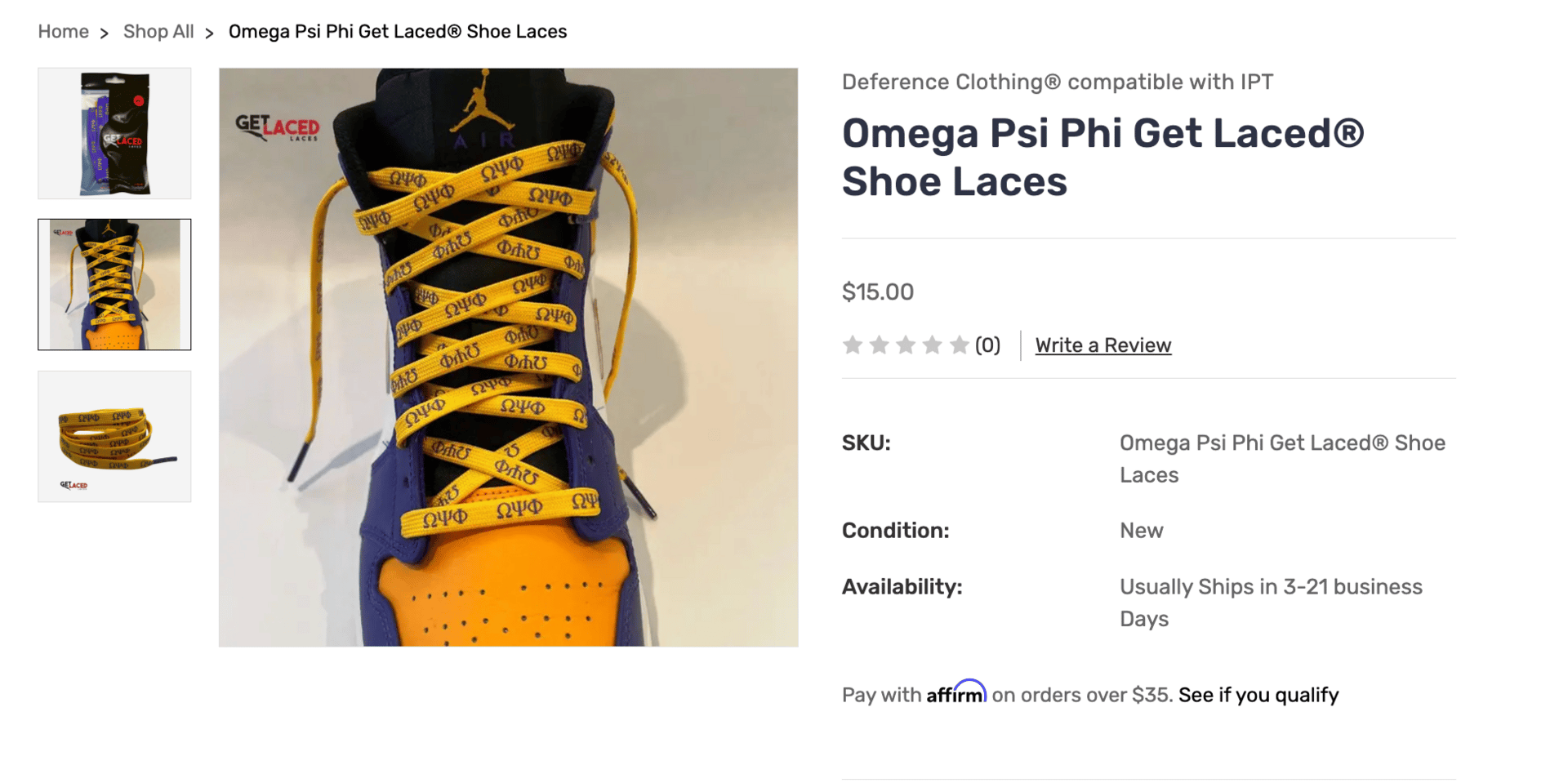 Nothing sends a loud and clear message of representation like our Greek Laces. These laces are designed to allow you the opportunity to represent your organization to the fullest, and quickly bring attention to you, yet remain completely silent during use. Nothing but respect… remember, your org is the best org around! Dress up your favorite pair of sneakers with these super comfortable and extremely stylish laces. The unique looped ends allow you to easily create bow knots that give the illusion of your fraternity or sorority. Our laces are available for the Divine Nine Greek Organizations, Alpha Kappa Alpha, Delta Sigma Theta, Zeta Phi Beta, Sigma Gamma Rho, Alpha Phi Alpha, Kappa Alpha Psi, Omega Psi Phi, Phi Beta Sigma & Iota Phi Theta. Be envied by your LB's, LS's, Sands, Prophytes and Neos! BE OWT!